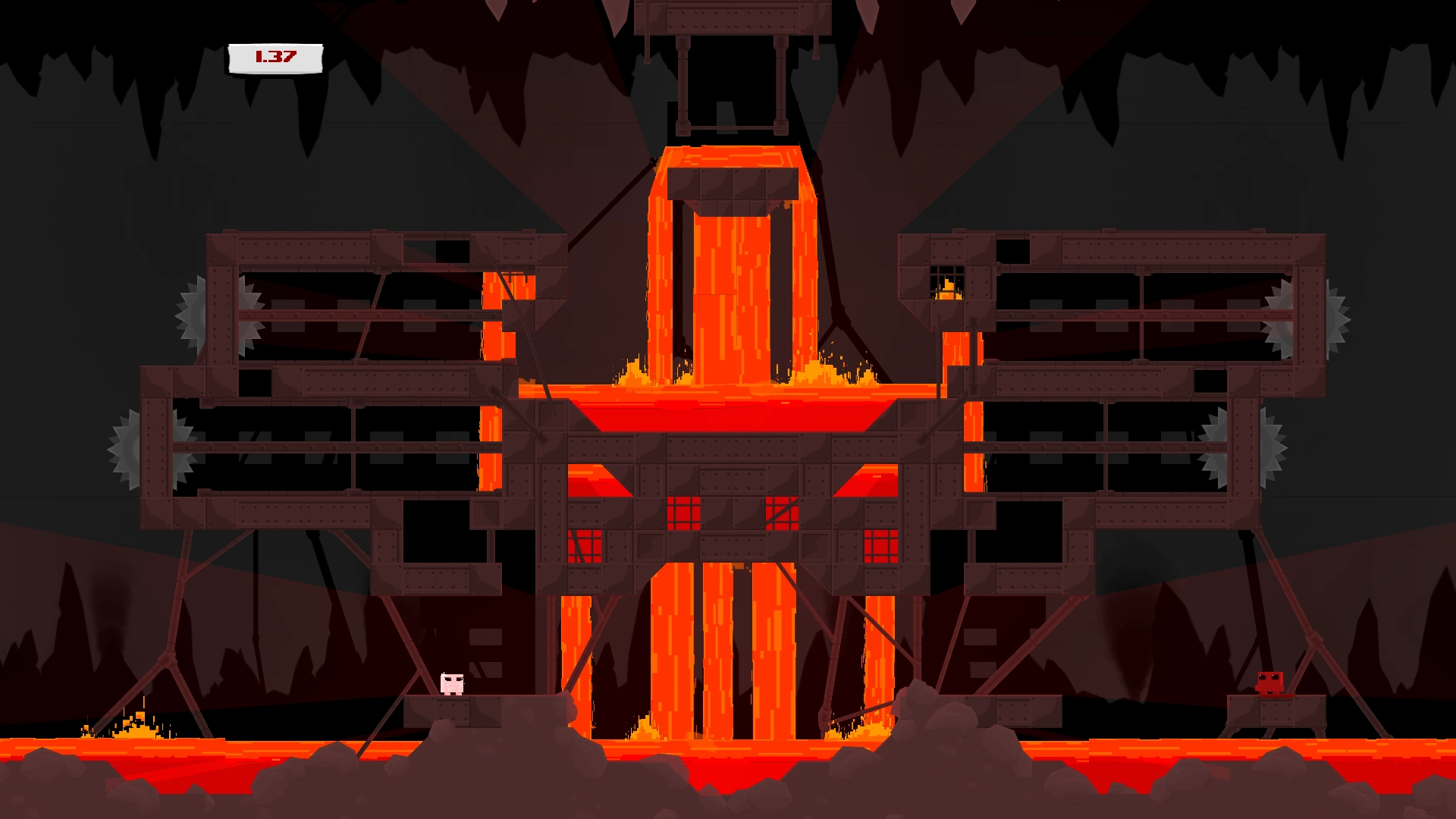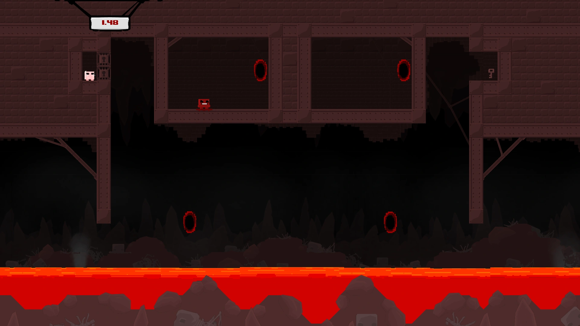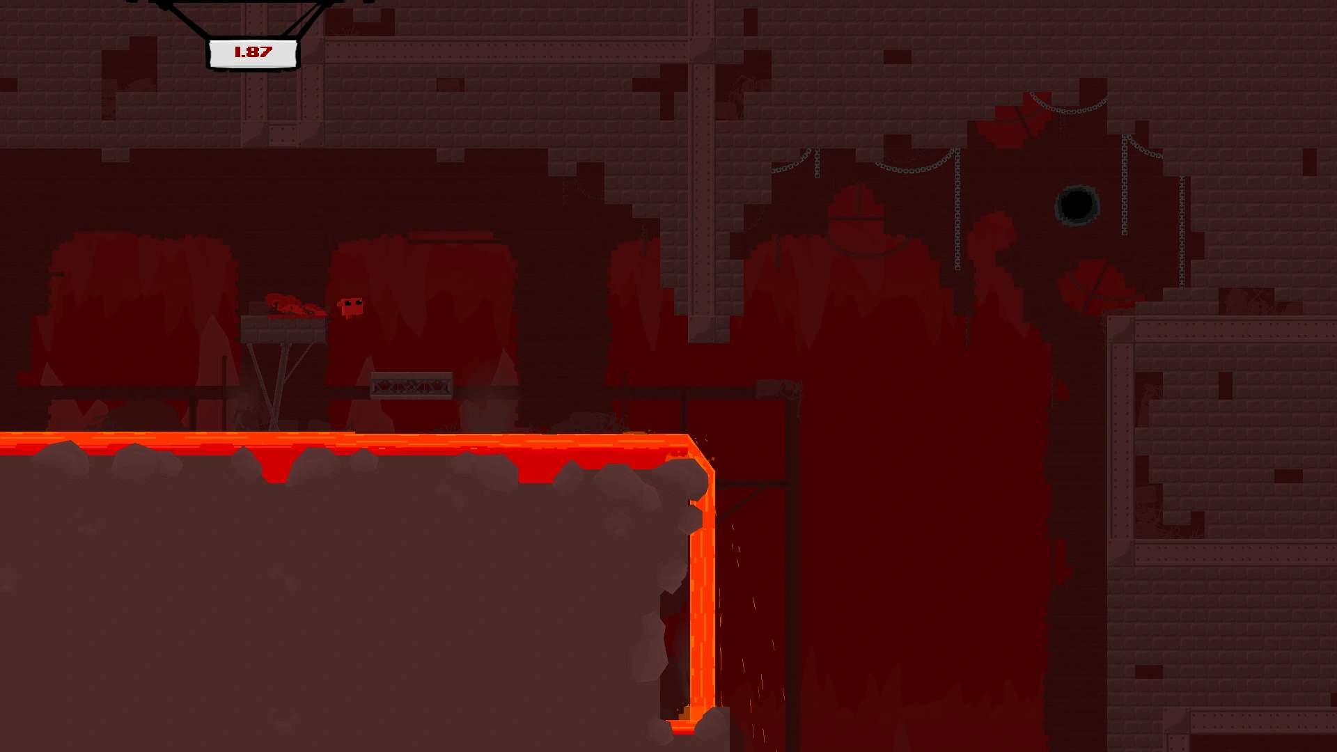 Hell seems to have some sort of machinery or mechanisms in place, as rustic metals and hellish contraptions can be located throughout Hell. The area however, is mostly made of brimstone and lava. The skeletal remains of the victims lie here as well, a reminder to any visitor who dares visit here. During the beginning of the chapter, there is mountainous terrain and lava lakes, but more mechanisms and structures will appear the further into Hell Meat Boy goes. The last few levels has him go through a flooded castle like structure, made of dark brown bricks, with a metal framework.