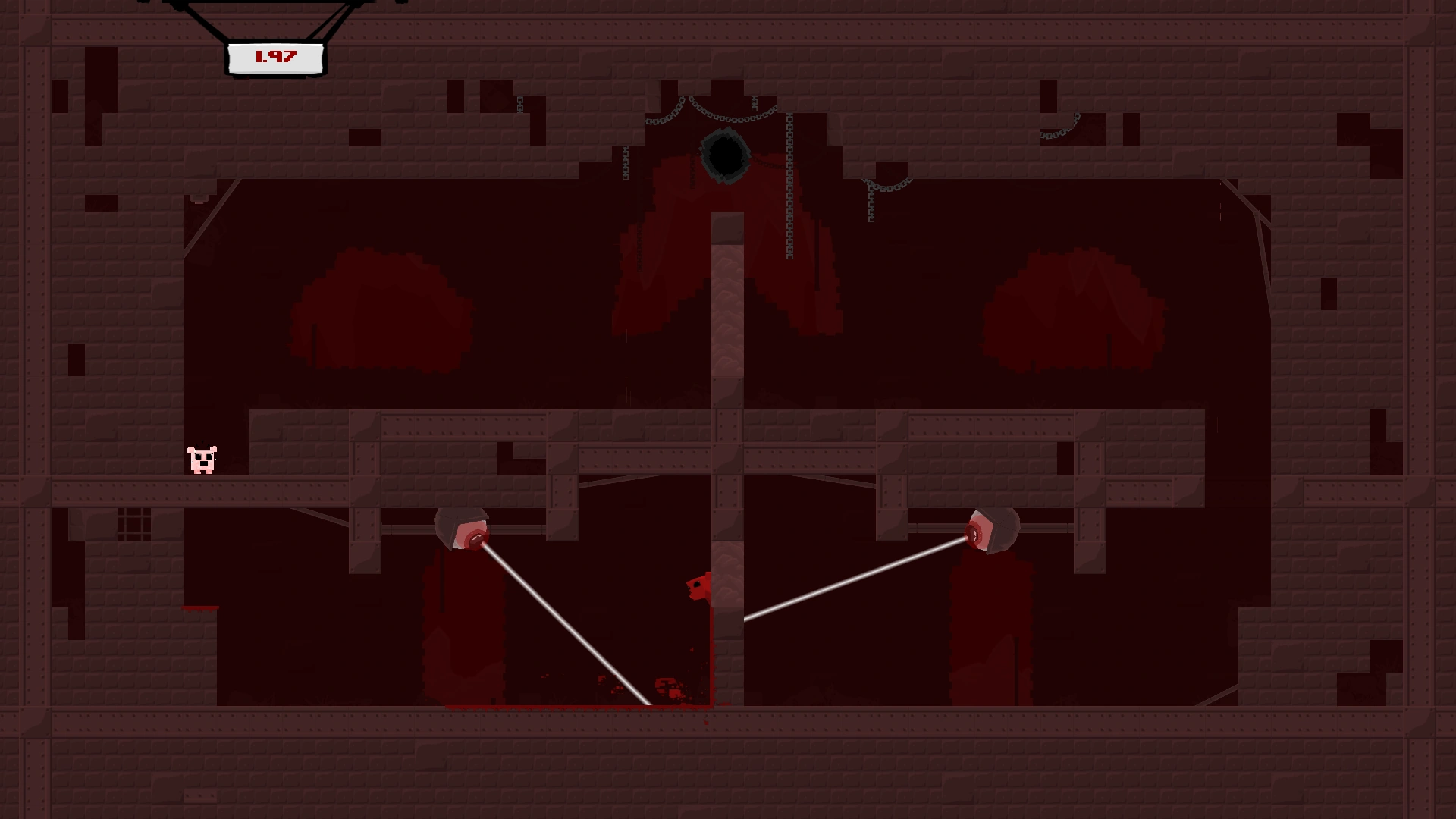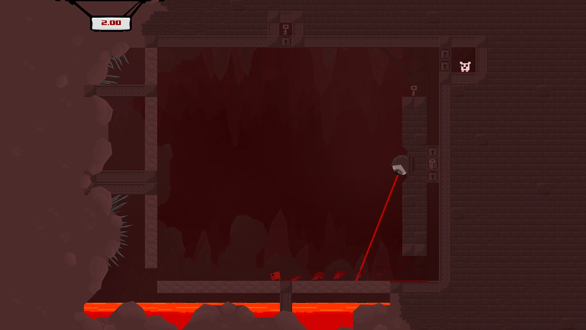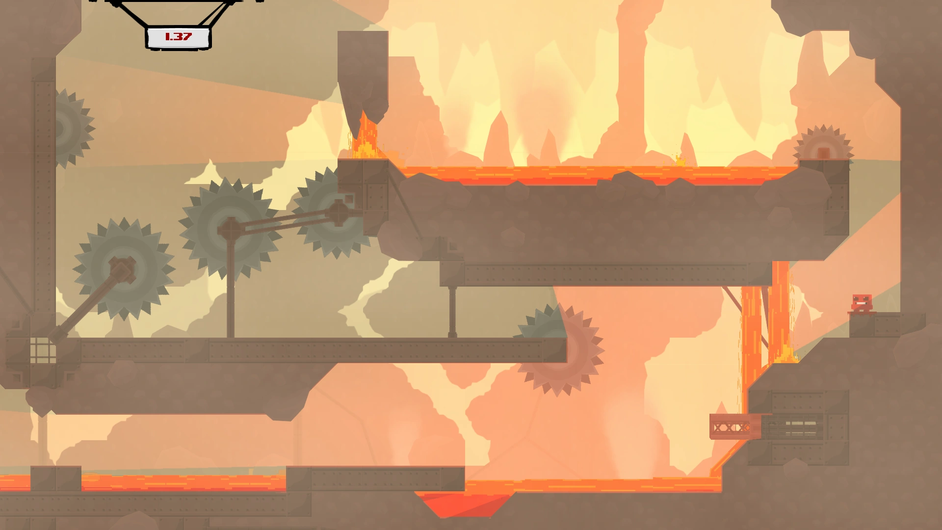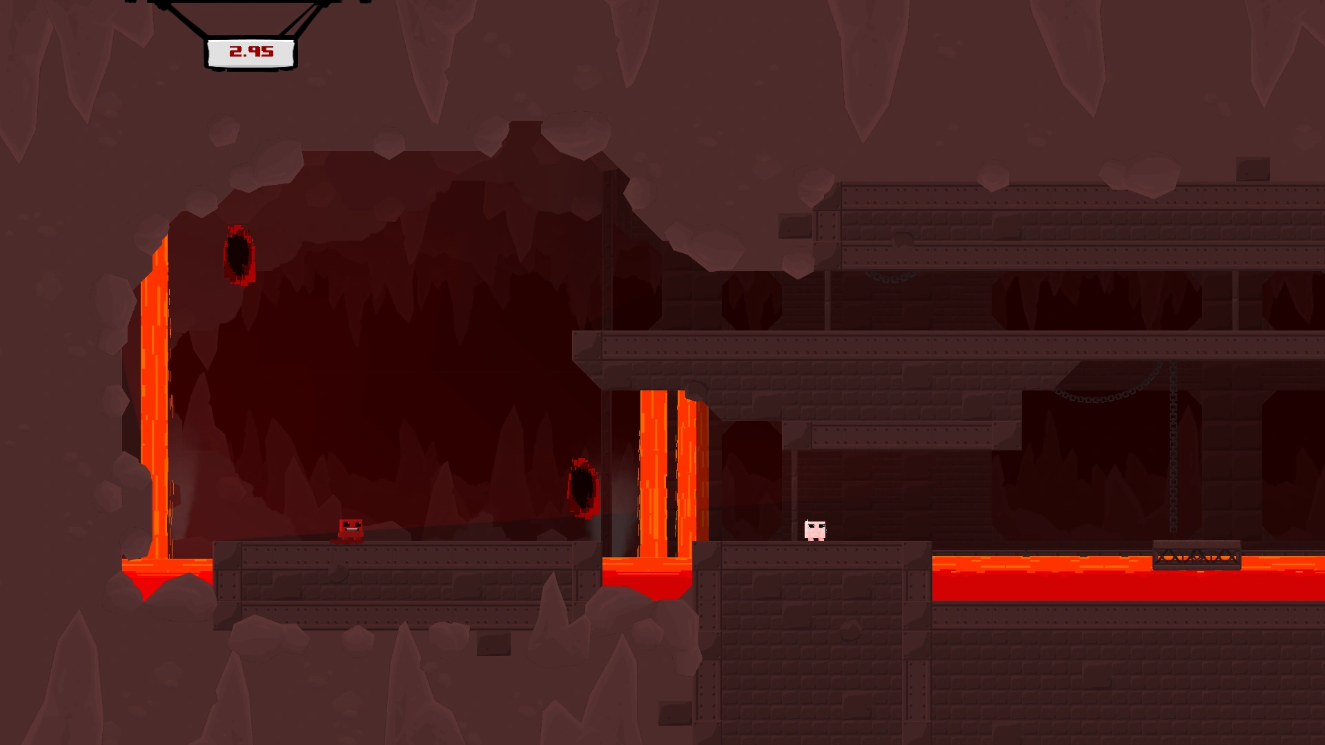 Hell seems to have some sort of machinery or mechanisms in place, as rustic metals and hellish contraptions can be located throughout Hell. The area however, is mostly made of brimstone and lava. The skeletal remains of the victims lie here as well, a reminder to any visitor who dares visit here. During the beginning of the chapter, there is mountainous terrain and lava lakes, but more mechanisms and structures will appear the further into Hell Meat Boy goes. The last few levels has him go through a flooded castle like structure, made of dark brown bricks, with a metal framework.